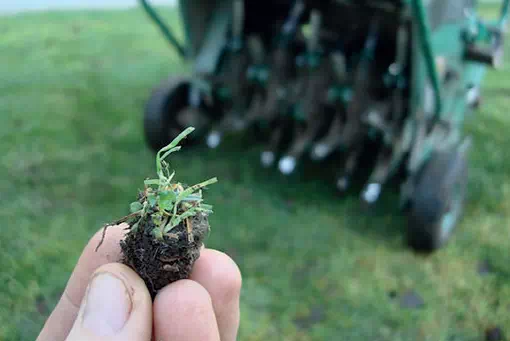 Wykonujemy aerację, czyli wykonujemy napowietrzanie gleby za pomocą narzędzi lub maszyn spulchniających służący rozluźnianiu podłoża i pobudzeniu trawy do krzewienia się. Na trawnikach intensywnie eksploatowanych aeracja jest ważnym zabiegiem pielęgnacyjnym. Aeracja trawnika to inaczej zabieg napowietrzania murawy, wykonywany dwa razy w sezonie. Jest ona niezbędnym zabiegiem pielęgnacyjnym, choć bardzo często pomijanym.